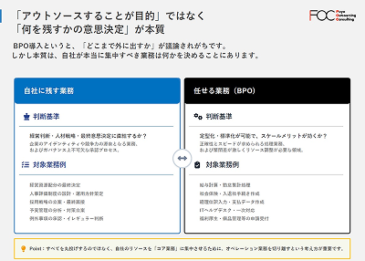 人事・経理・総務・ITなど、バックオフィス業務の抜本的改革に挑む次世代BPO。単なる外注化でなく「何を残すか」の戦略から、横断的な統合まで実践的フレームを解説します。(PDF 1,507KB)